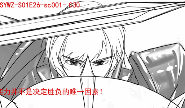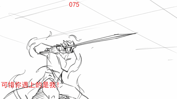 第二个镜头,韩羽猛地将剑平举,指向镜头,注意这里的节奏需要很快,和前面的变剑的节奏拉开,给到镜头从剑尖拍后面韩羽的脸,然后出台词(这个镜头需要有冲击力,理论上来说应该是近景只拍胸口以上,具体需麻烦分镜老师设计一下)
