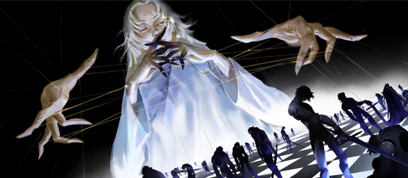 24,083两人坐在桌前的镜头改为龙皓晨肩后镜左移,正拍夜华手上液态灵力涌动,然后他轻轻一挥,桌面变为棋盘,龙皓晨与夜华坐在棋盘两侧低头看棋盘(龙皓晨和夜华作为后景,棋盘棋子作为前景,构图可参考下面的图片)