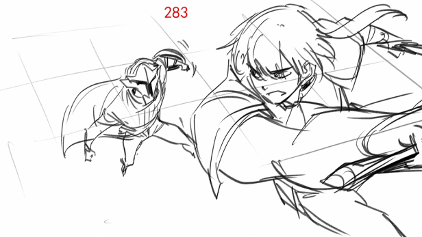 ⑧281调整为韩羽被弹飞(281被弹飞后的动作需要和283韩羽被龙皓晨打的动作连贯,麻烦分镜老师检查一下)
