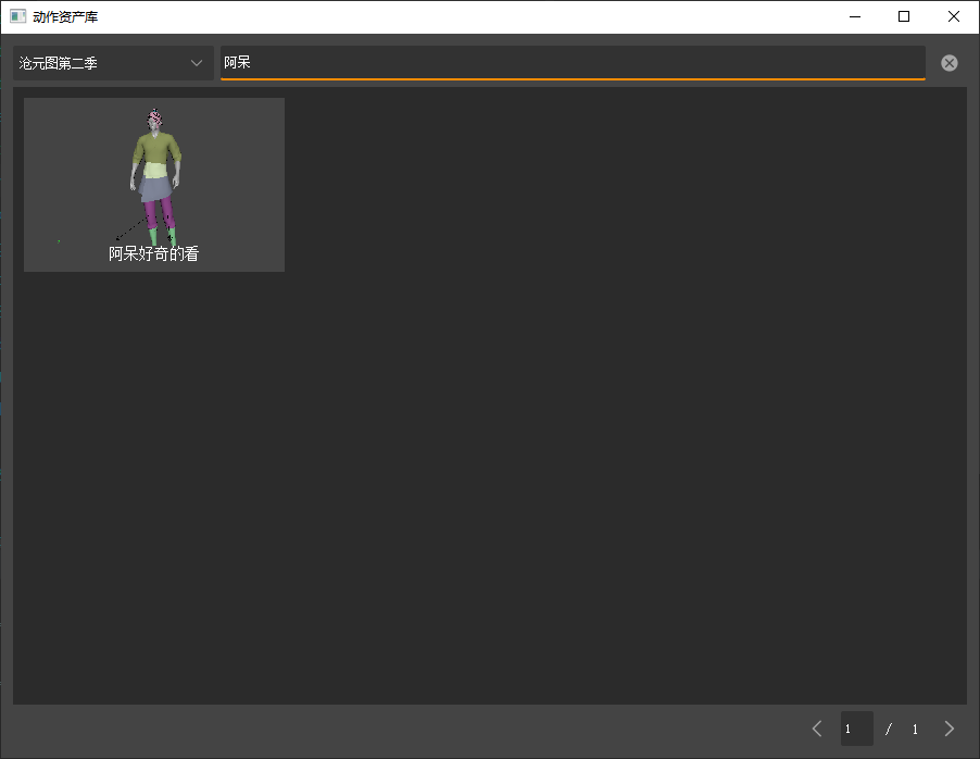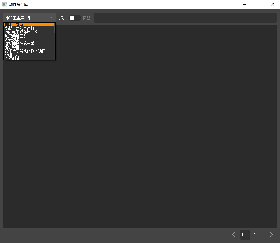 项目选择下拉框右侧输入框为搜索框,可以在此处输入需要搜索的动作资产名称,回车后开始搜索包含关键字的动作资产。