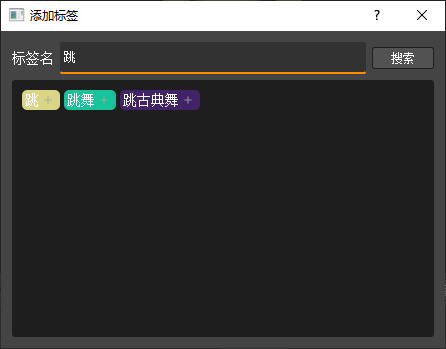 若想添加的标签不存在,则可会弹出添加的字样,此时点击新建后会创建新标签,注意此时仅为创建新标签,需要再点击标签后的加号按钮才是添加成功。