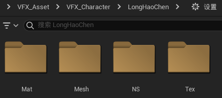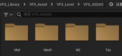 文件规范:创建对应文件夹,使用公共库MF,NM,VFX_Mesh,Texture内的资产不需要拷贝到文件内,其他都需要按照类型规范文件。